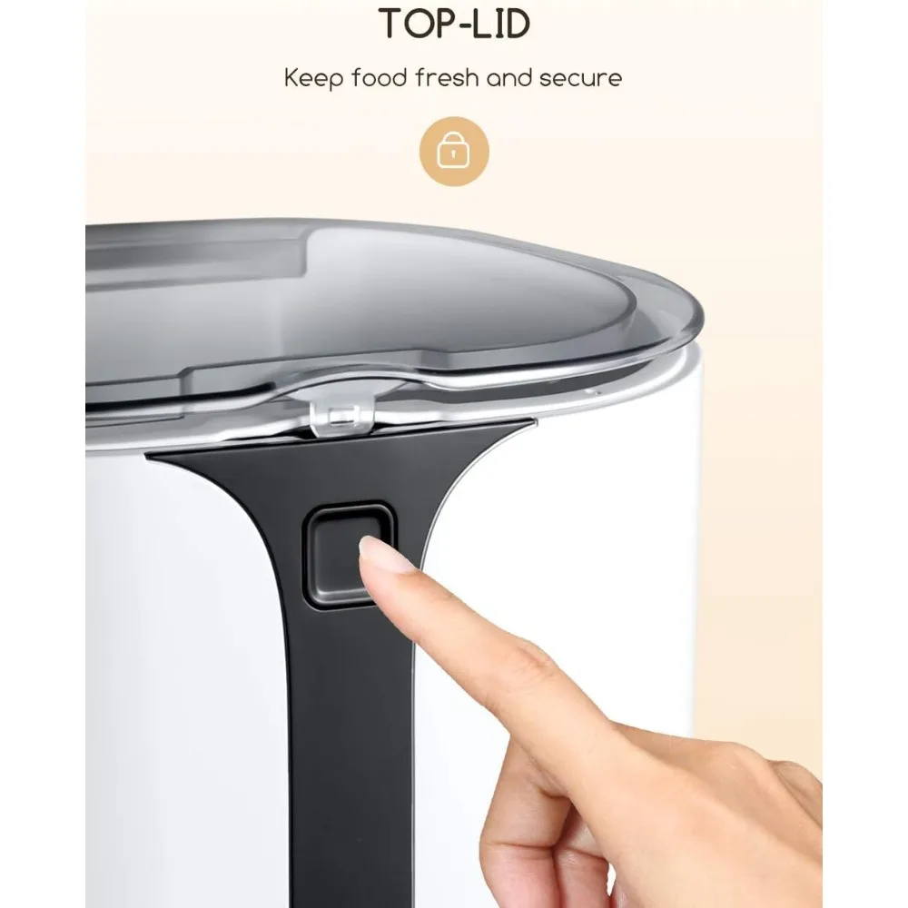 PRACTICAL DESIGN-The top cover forms a kind of seal to keep the coarse ground food fresh, so that your pet can receive the food it needs. Removable food container,plastic bowl and ABS shell, easy to install and clean.