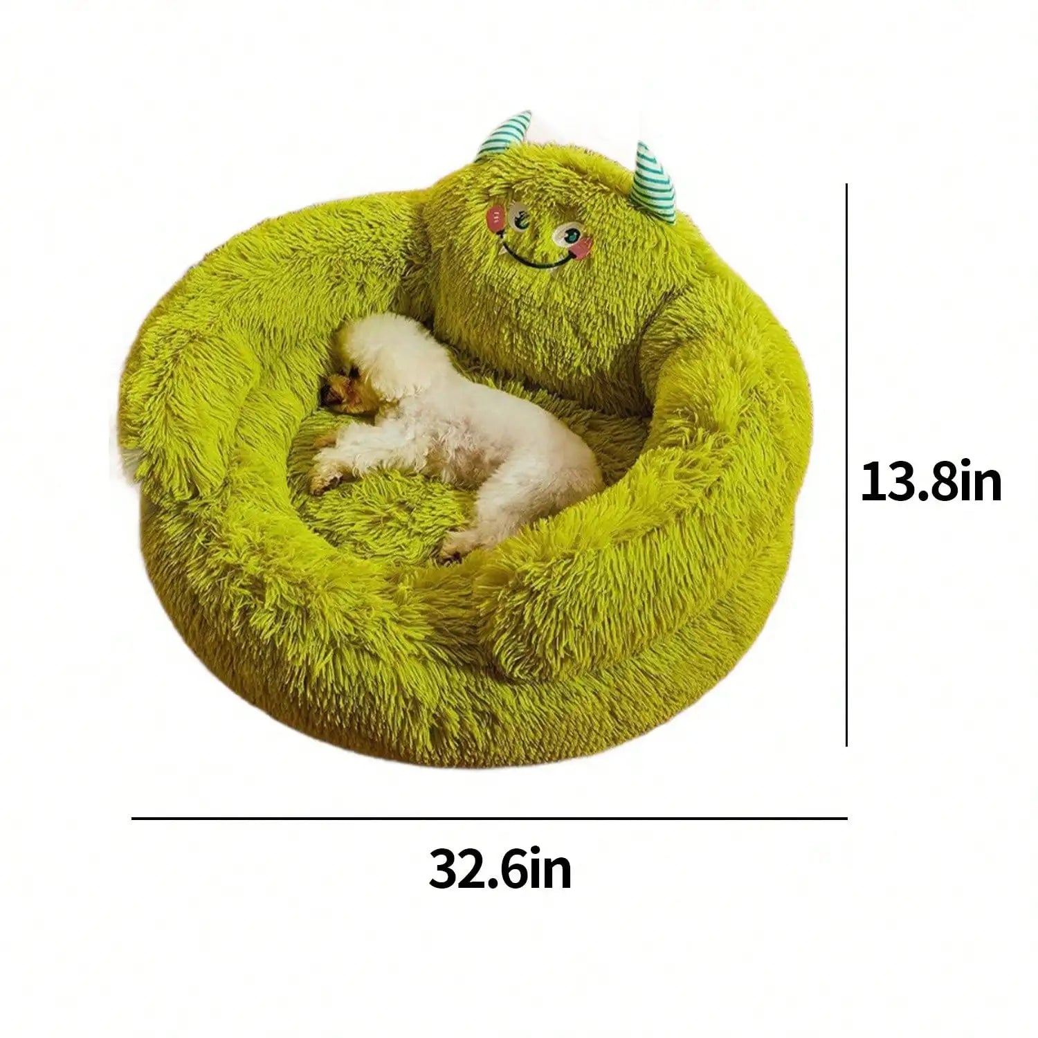 Calming Donut Bed Green Plush Anti-Anxiety Dog & Cat Bed for Pets Soft Indoor Cuddler Bed Fluffy Plush with Non-Slip Bottom