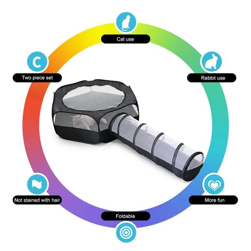 Cat Tunnel Cage House 2 in 1 Interactive Foldable Outside Play Tent and Tunnel for Bunnies Kitten Rabbits Hamster Ferrets Black