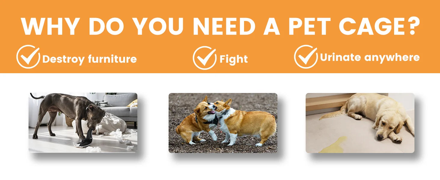 Multifunctional Removable Tray - Our wooden dog crate has a multifunctional removable tray compared to others, you can slide it beneath bottom to catch any dirt and food residue, easy to clean without any hassle and no need to move the heavy crate for clean, also, you can put the tray inside the crate and include a dog bed, reduces anxiety and soothe dogs when they stand on the wire bottom