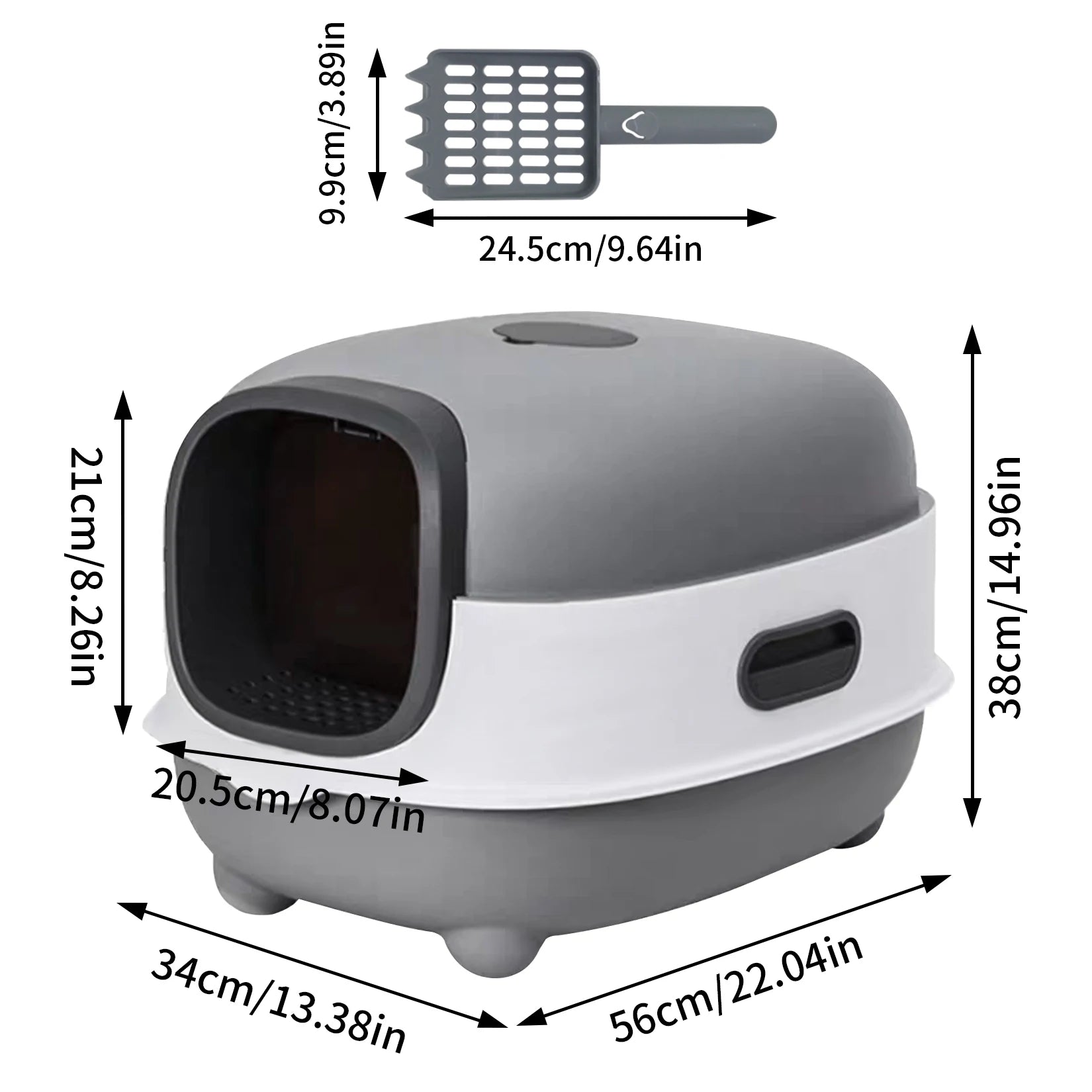 Oval Oblong Hooded Cat Litter Box Tray Front Entry Toilet with Litter Scoop for Kittens Cat Breeds Enclosed