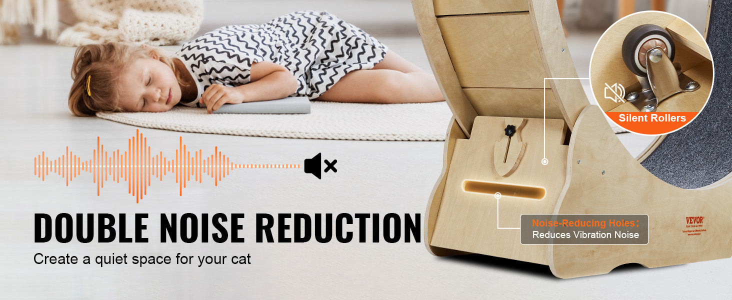 Featuring a silent wheel and noise-reducing holes, our cat wheel can reduce noise by 10-20%, creating a peaceful and enjoyable exercise environment for your pet. This allows you to coexist harmoniously with your pet and family.
