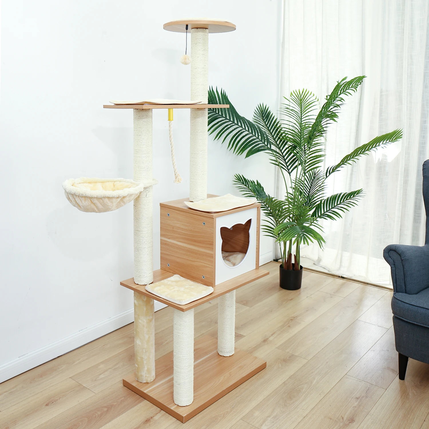 Wood Cat Scratcher Luxury Cat tree Condo Kitten Nest Climbing Tower with Scratching Post Cat Toys Playing Platform House