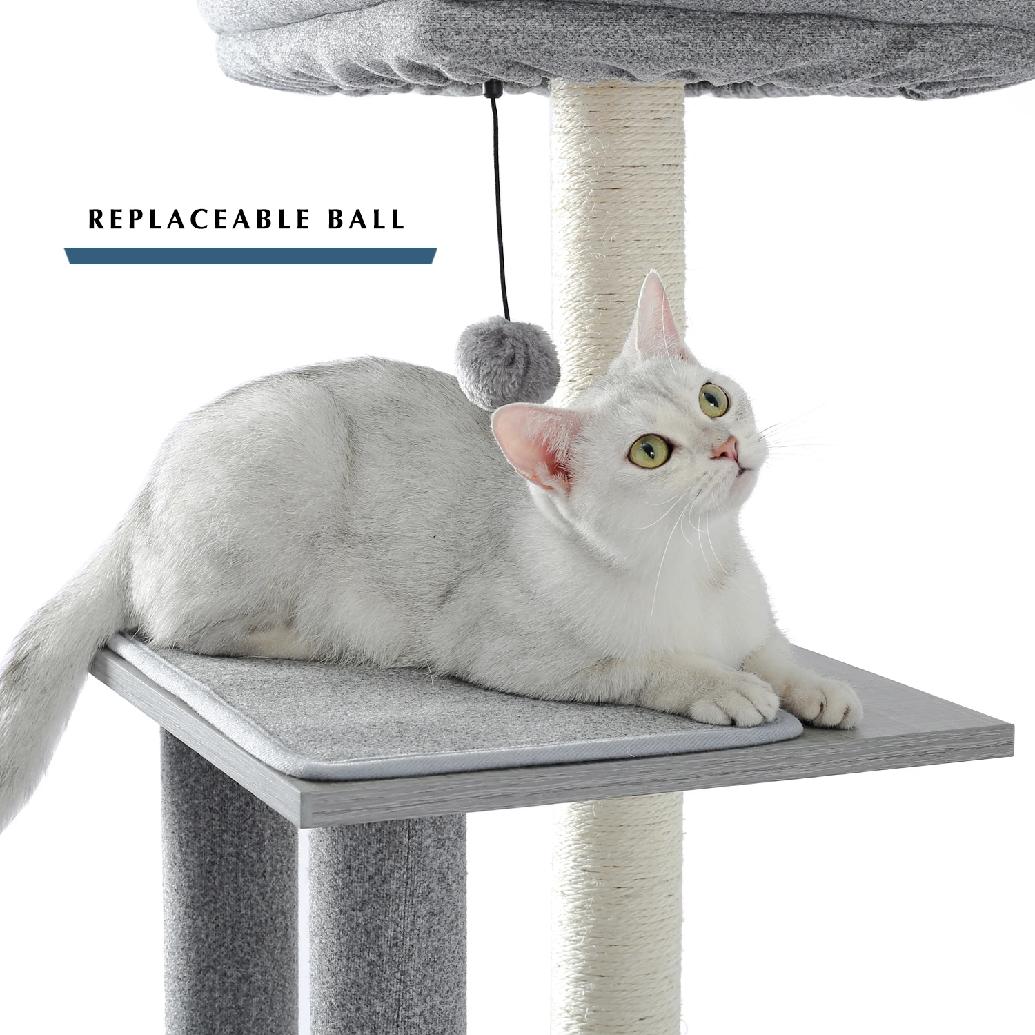 ·Multi Function for Endless Fun- 4 level constructions satisfy cats’ needs to climb and seek different height. It is equipped with 6 posts at different levels covered by either felt or natural sisal provide different scratching experience. The two top perches are perfect height for birds view, which are pampam balls that give extra fun.