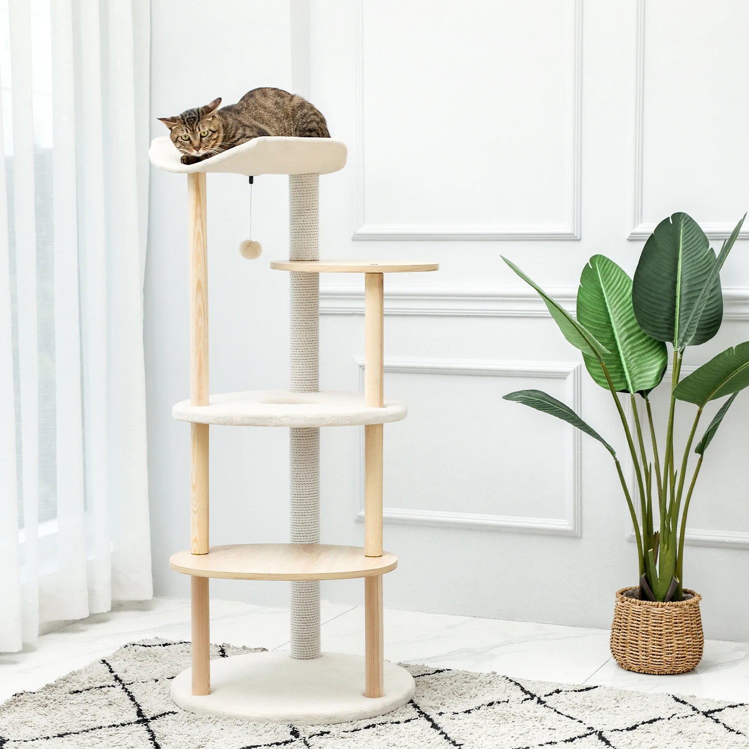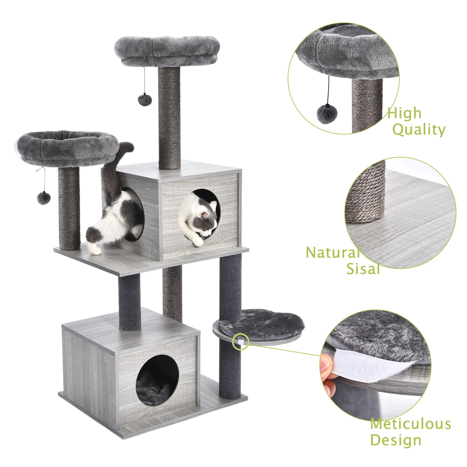 Wood Cat Scratcher Luxury Cat Tree Condo Kitten Nest Climbing Tower with Scratching Post Cat Toys Playing Platform House