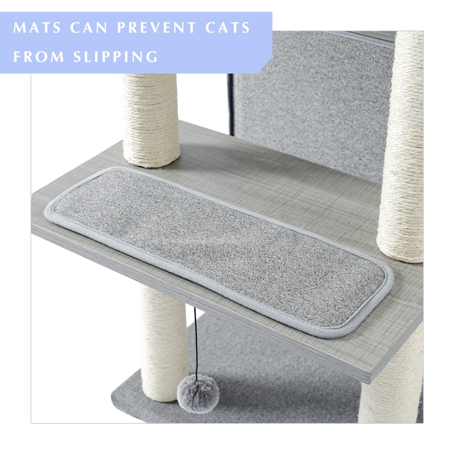 DURABLE & COMFORTABLE:Our cat tree is made of thick and environmentally friendly CARB-certified natural particle boards. The firm boxes and sturdy scratching posts are fully covered with natural sisal ropes that ensure the stability of the whole cat tree. It is worth mentioning that it could keep your furry friends cool all the time in the summer. Movable mats and soft cushions not only make the cat more comfortable to rest, but it also prevents them from slipping.