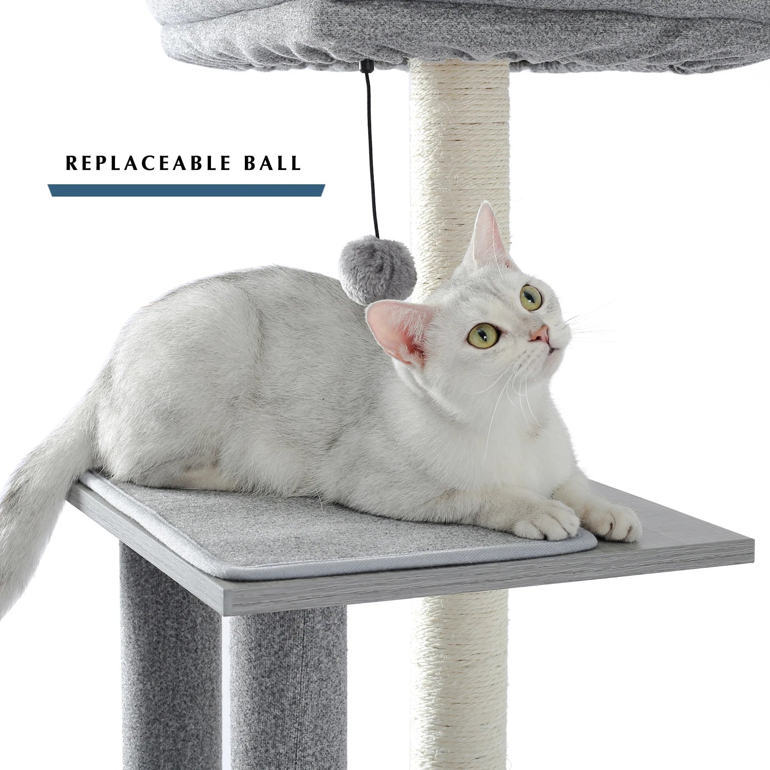 ULTIMATE ACTIVITY CENTER: Everything your cats need are included on this cat tree: 2 spacious condos for your kitties with plenty of room to sleep in, a top perch with a raised rim for lounging, 3 fully sisal-wrapped scratching posts and a scratching ladder to keep your furniture scratch-free and a interactive ball offers extra fun. This cat tree is perfect for your cats to climb, exercise, play and relax.