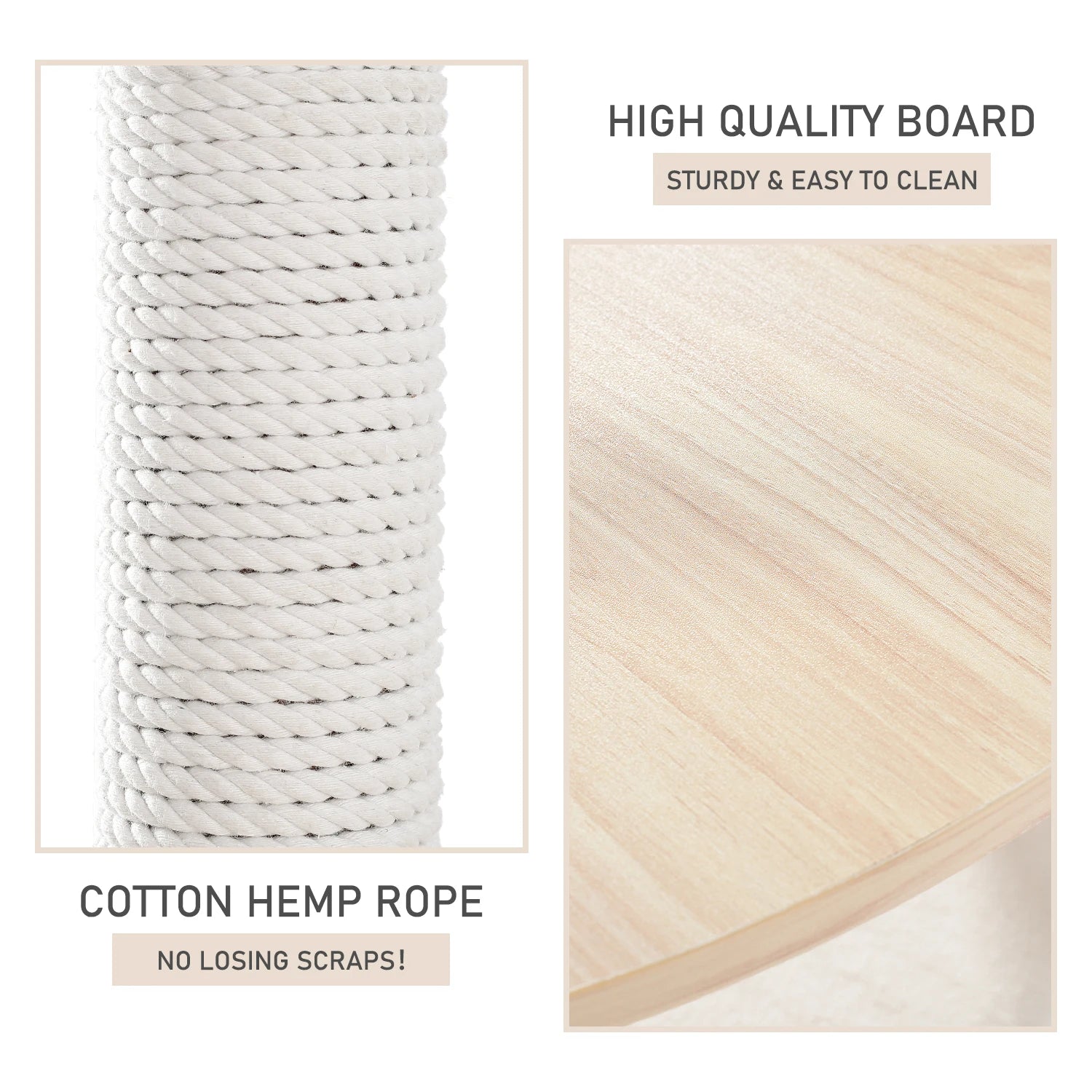 MATERIAL OF HIGH QUALITY- High density veneer board, smooth and sturdy. Thickened natural sisal, it can withstand the long-term scratching of cats. Comfortable cushions offer cats deep sleep.